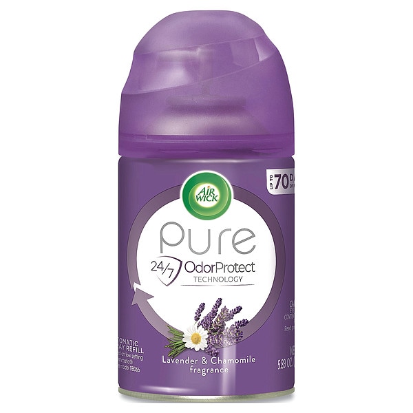 Air Freshener Refill, Liquid, Fragrance Lavender & Chamomile, Aerosol Spray, 5.89 oz, Product Series Freshmatic(R), Refill Life 70 day, NSF Rating Not Rated, Compatible Grainger Part Number 20L009, 20L032, 45CC93, 45CC94, 48TF31, Compatible Mfg. Model Number 62338-79782, 62338-92944, 62338-93554, REC 77960, REC 79830, Biodegradable Yes, Length 2 5/8 in, Height 5 5/8 in, NFPA 30B, TSCA Compliant, Net Weight 5.89 oz, Package Quantity 6