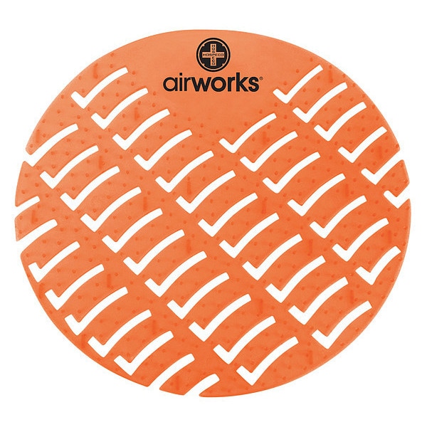 Urinal Screen, Fragrance Mango, Shape Round, Contains Enzymes, Cleaner Form Solid, Color Orange, Container Type Case, Product Life 30 days, Product Series Air Works, Package Quantity 60