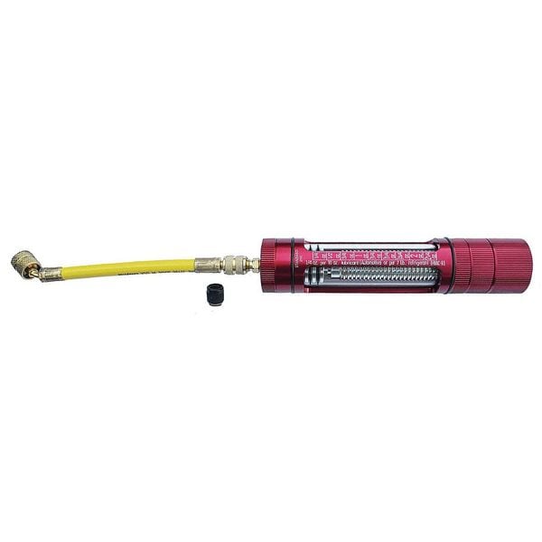 Large Refrigerant Oil Injector, Tool Type A/C Oil and Dye Injector, Application Automotive A/C, Vehicle Make/Model/Year All Makes/Models/1993 to Present, Material Steel, For Use With R-134A A/C System, Outside Diameter 2 in, Overall Diameter 2 in, Overall Length 9 in, Overall Width 12 in, Number of Pieces 3, Includes Couplers, Hose, Size 2 1/2 in x 12 in x 3 in, Vehicle Make Universal, Vehicle Model Universal, Vehicle Model Year 1993-Present
