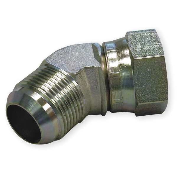 Male Elbow, 45 Degrees, Thread Size 7/16 in -20, Fitting Shape 45 Degrees Elbow, Hose Fitting A Size 1/4 in, Hose Fitting B Size 1/4 in, Hose Fitting A Connection Type Flared, Hose Fitting B Connection Type JIC, Overall Length 0.72 in, Fitting Material Stainless Steel, 316, Temp. Range -165 Degrees to 1200 Degrees F, MS51522, SAE J514 070321