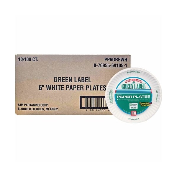 AJM PP6GRE Paper Plates, Green Label, 6 Plate 1000/CT