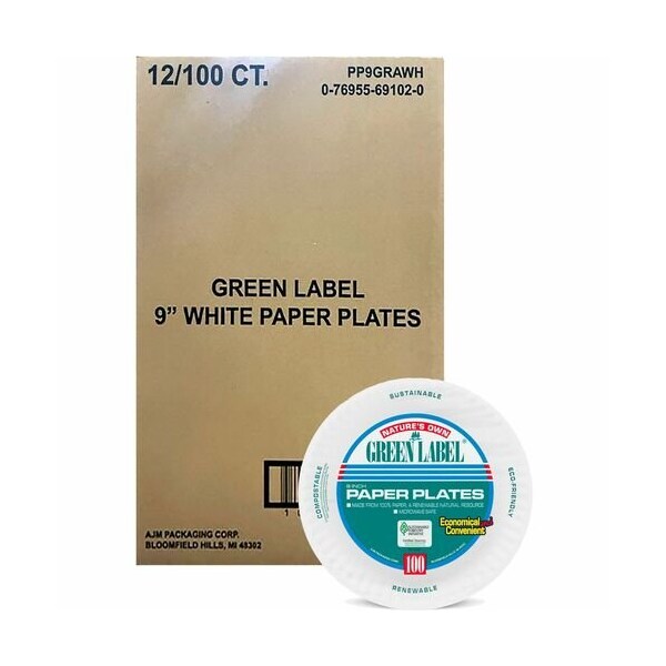 AJM PP9GRA Paper Plates, Green Label, 9 Plate 1200/CT