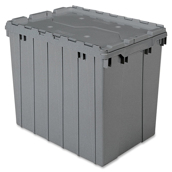 Attached Lid Tote, Container Wall Type Solid, Fork Pockets Fork Pockets Not Included, Includes Lid Lid Included, Material Plastic, Maximum Operating Temperature 140 Degrees F, Minimum Operating Temperature -5 Degrees F, Body Color Gray, Lid Color Gray, Nestable Nesting Capable, Overall Height 17 in, Overall Length 21 1/2 in, Overall Width 15 1/4 in, Resistant To Alkali, Corrosion, Rust, Water, Weak Acid, Stackable Stacking Capable, Stacking Capacity 200 lb, Volume Capacity 17 gal