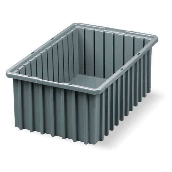 Divider Box, Color Gray, Divider Color Not Applicable, Electrostatic Discharge Not Electrostatic Discharge Conductive, Includes Dividers Dividers Not Included, Includes Lid Lid Not Included, Material Plastic, Nestable Not Nesting Capable, Number of Dividers Not Applicable, Number of Long Divider Slots 7, Number of Short Divider Slots 11, Overall Height 6 in, Overall Length 16 1/2 in, Overall Width 10 7/8 in, Surface Resistivity 1 x 10^13 ohm/sq, Volume Capacity 0.44 cu ft, Weight Capacity 35 lb