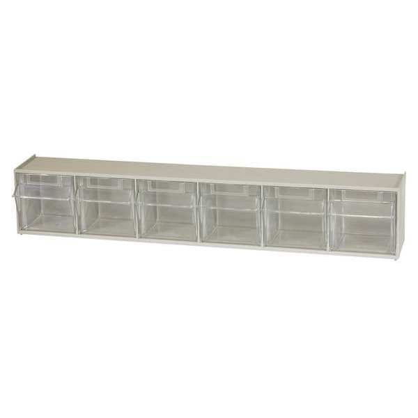 Tip-Out Bin, Frame Color Beige, Frame Finish Unfinished, Mounting Location Frame, Panel, Rail, Wall, Overall Height 4 1/2 in, Overall Length 3 3/4 in, Overall Width 23 5/8 in, Stackable Stacking Capable, Volume Capacity 0.19 cu ft, Weight Capacity 15 lb, Number of Shelves 1, Number of Tiers 1, Bin Color Clear, Bin Inside Depth 2 1/2 in, Bin Inside Height 3 3/4 in, Bin Inside Width 3 in, Divider Adjustment Increments Not Applicable, Includes Dividers Dividers Not Included, Material Plastic