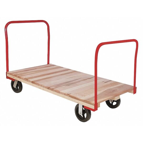 Platform Truck, Load Capacity 2100 lb, Overall Height 36 3/8 in, Overall Length 48 in, Overall Width 24 in, Deck Material Wood, Deck Height 9 in, Deck Length 48 in, Deck Width 24 in, Frame Material Steel, Handle Type Removable, Pipe, Color Natural / Red