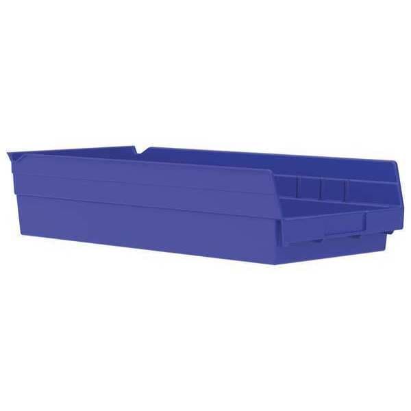 Shelf Storage Bin, Plastic, Blue, 4 in H, 8 3/8 in W, 17 7/8 in L