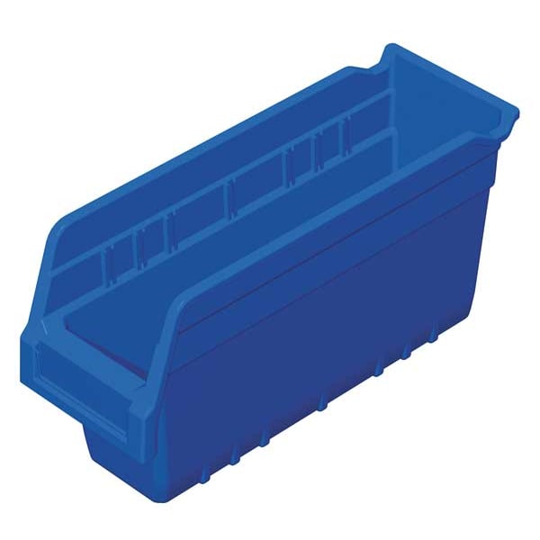 Shelf Storage Bin, Plastic, Blue, 6 in H, 4 1/8 in W, 11 5/8 in L