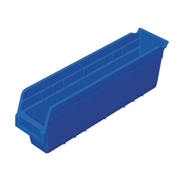 Shelf Storage Bin, Plastic, Blue, 6 in H, 4 1/8 in W, 17 7/8 in L