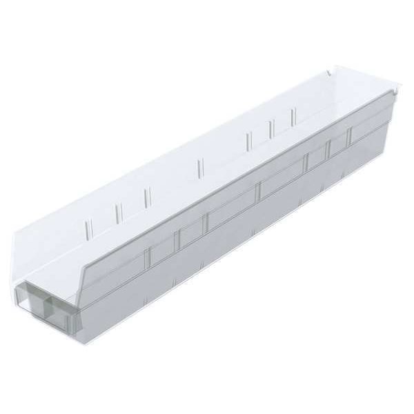 Shelf Storage Bin, Plastic, Clear, 4 in H, 4 1/8 in W, 23 5/8 in L