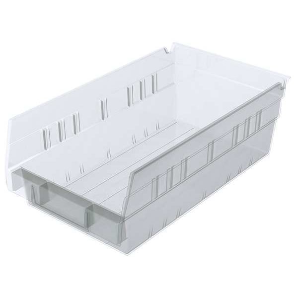 Shelf Storage Bin, Plastic, Clear, 4 in H, 6 5/8 in W, 11 5/8 in L
