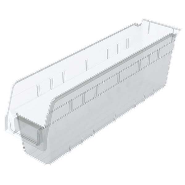 Shelf Storage Bin, Plastic, Clear, 6 in H, 4 1/8 in W, 17 7/8 in L