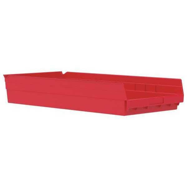 Shelf Storage Bin, Plastic, Red, 4 in H, 11 1/8 in W, 23 5/8 in L