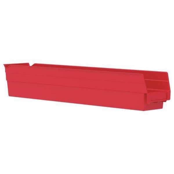 Shelf Storage Bin, Plastic, Red, 4 in H, 4 1/8 in W, 23 5/8 in L