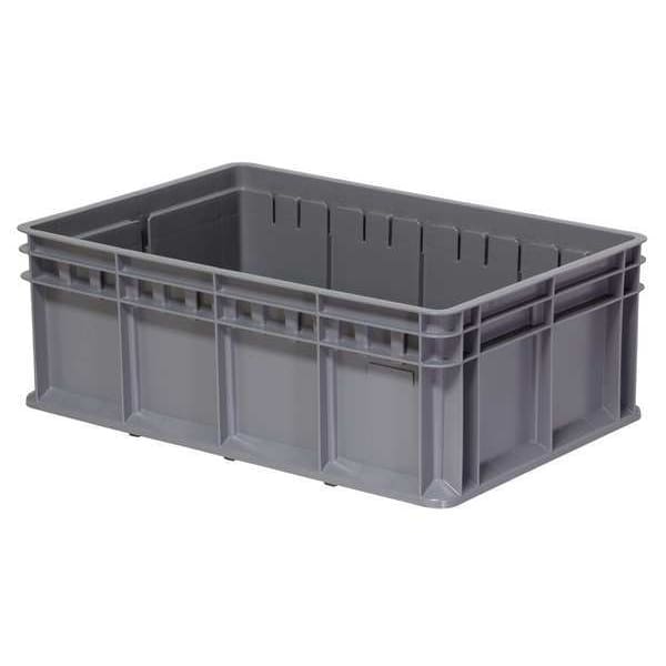 Straight Wall Tote, Container Wall Type Solid, Fork Pockets Fork Pockets Not Included, Includes Lid Lid Not Included, Material Plastic, Maximum Operating Temperature 140 Degrees F, Minimum Operating Temperature -20 Degrees F, Body Color Gray, Nestable Nesting Capable, Overall Height 8 5/8 in, Overall Length 23 5/8 in, Overall Width 15 3/4 in, Resistant To Alkali, Corrosion, Rust, Water, Weak Acid, Stackable Stacking Capable, Stacking Capacity 320 lb, Volume Capacity 11.2 gal