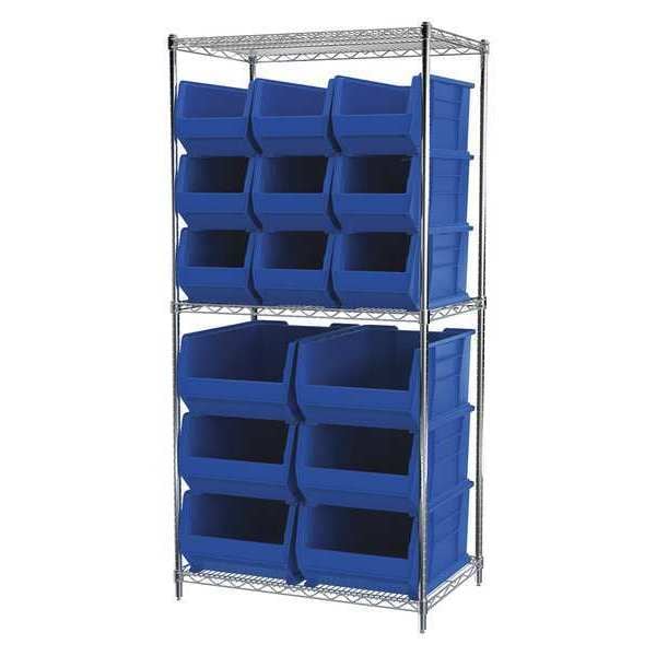 Wire Shelving,24x36x74,12 Bins,Yellow