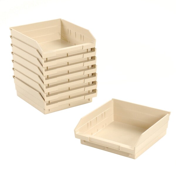 Tough, durable plastic bins are ideal for keeping parts organized. Designed for use on 12, 18 and 24 deep shelving units and racksBins are waterproof and chemical, grease and oil resistant Reinforced ribbed construction for added strength Features slotted label holder for easy content identification and a wide hopper front for easy access Nestable when empty to save space Sold in carton quantities. These permanent, molded-in colored PREMIUM BINS are virtually unbreakable Use colors to differentiate items for quick content identification.