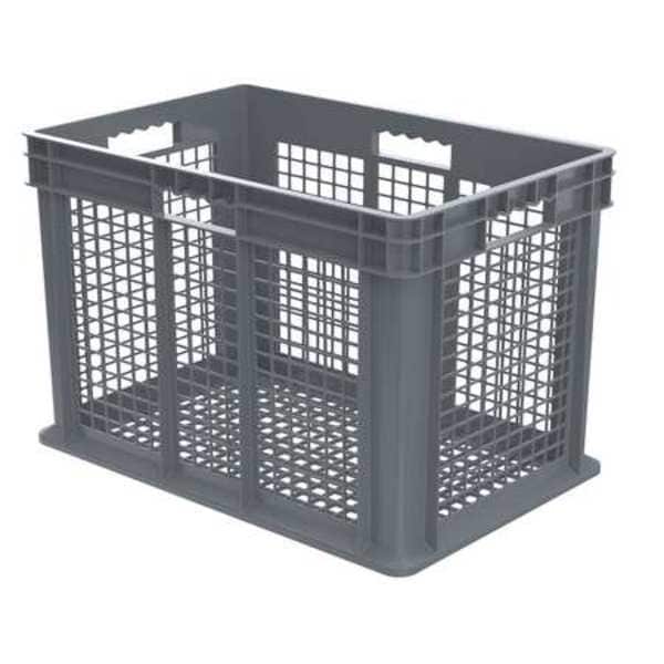 Vented & Stackable Straight Wall Storage Container, 26.6 gal, Gray, Industrial Grade Polymer