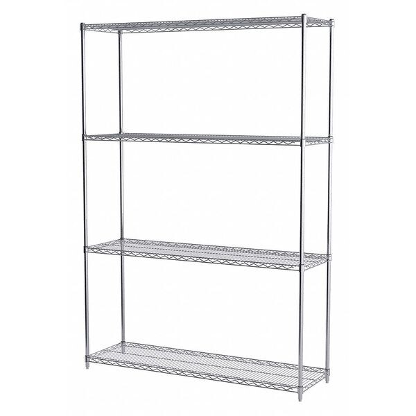 Wire Shelving Unit, Silver Color, Includes (4) Shelves, (4) Uprights, (16) Shelf Clips, (8) S-Hooks, Overall Depth 18 in, Overall Height 86 in, Overall Width 60 in, Standards NSF