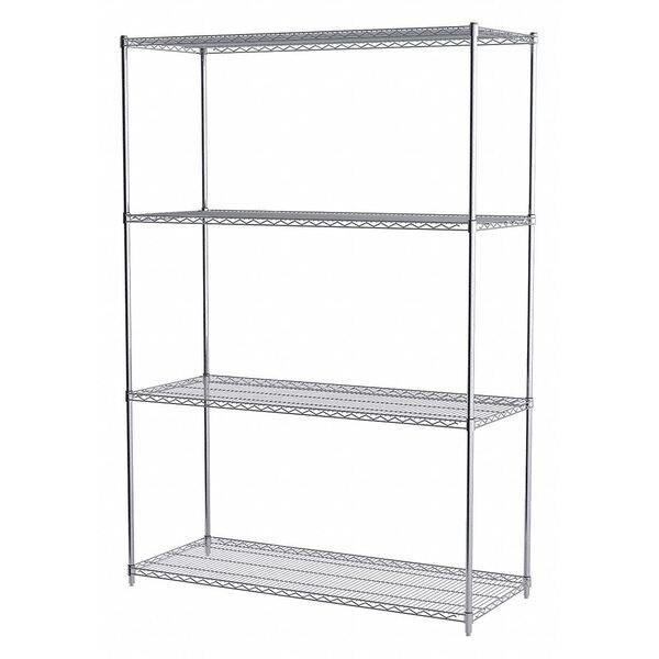 Wire Shelving Unit, Silver Color, Includes (4) Shelves, (4) Uprights, (16) Shelf Clips, (8) S-Hooks, Overall Depth 24 in, Overall Height 86 in, Overall Width 60 in, Standards NSF