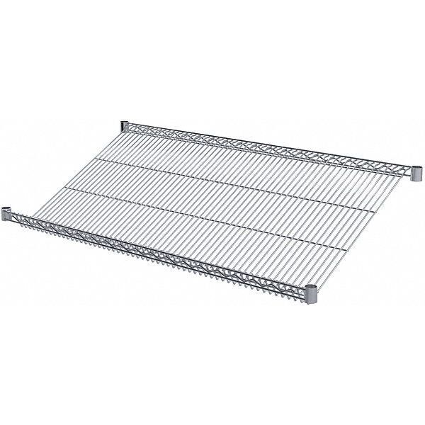 Wire Slanted Shelf, Color Silver, Overall Depth 24 in, Overall Width 48 in, Lip Height 1 3/8 in, Package Quantity 4