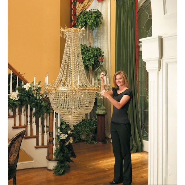Use this 200lb residential grade standard installation light lift to help you say goodbye to dangerous ladders and expensive cleaning services! Change the bulbs and maintain the luster of your hard-to-reach light fixture with just the turn of a key. Aladdin Light Lift has an easily installed motorized lift for any home or business. Aladdin Light Lifts are patented UL listed and rigorously tested for years of trouble-free operation.