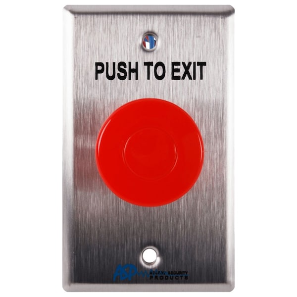 Button, Plate, PN Switch, Type Single Gang, Switch Action Pneumatic, Material Stainless Steel, Finish Satin Chrome, Depth 2 1/2 in, Button Color Red, Color Silver, Button Dia. 1-1/2 in, Input Voltage 125V AC, Output Form Z Relays, Amps AC 10, Event Audit Trail No, Keypad No, Cylinder No, Standards NFPA 101, For Use With Magnetic Locks, Includes Plate, PN Switch