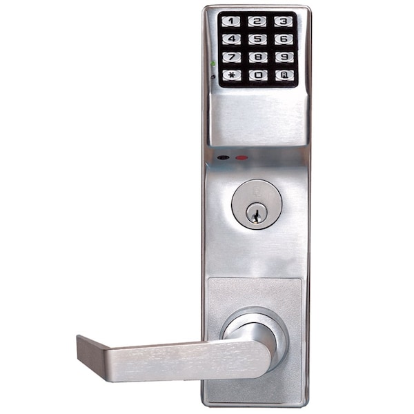 Pushbutton Mortise Lock with Deadbolt, 300 Users, 40,000 Event Audit Trail, Weatherproof, Straight Lever, Left Hand or Right Hand Reverse, Satin Chrome