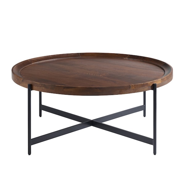 The simplistic design is both chic and functional. The mix of materials give this collection a rustic industrial feel that is sure to bring character to your living space. Features solid wood tray tops that are fixed in place on a metal base. This round coffee table provides an ideal spot to place your books, magazines, beverage or snacks while entertaining in the living room.