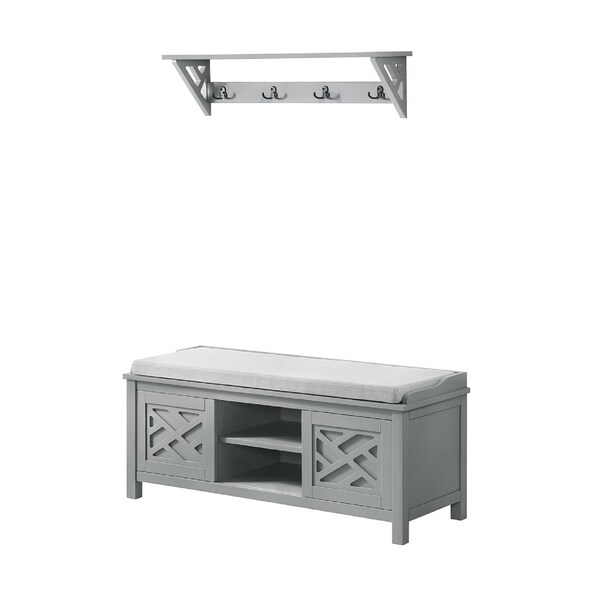 Coventry Coat Hook with Storage Bench Hall Tree Set, Gray
