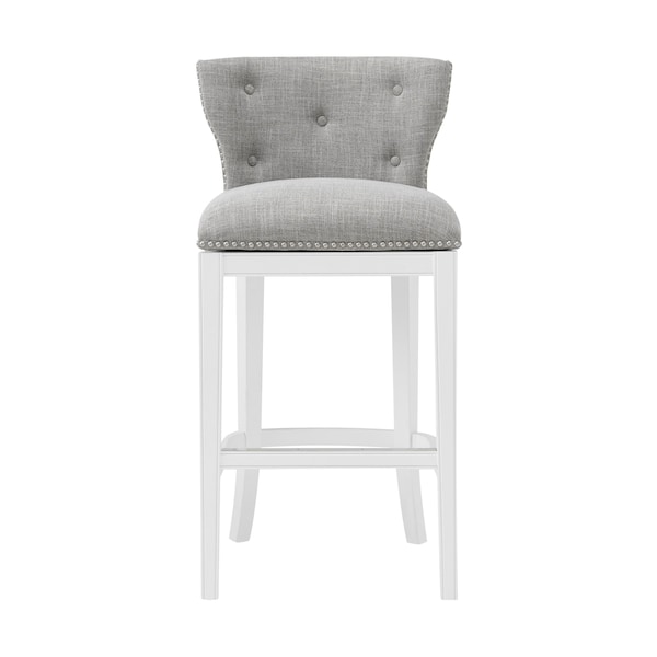 Bring comfort and elegance to your bar with these bar stools. The seat and back are upholstered in linen like fabric and accented with trend-forward button tufting and silver satin nailhead trim. The bar stools feature a steel memory return-swivel mechanism, bringing your stool to its original position after removing static weight. The footrest gives you stability in addition to a durable metal kick plate protecting the top of the front-facing footrest from scuffs and scratches. These comfortable bar stools also provide sturdy durability to any dining space.