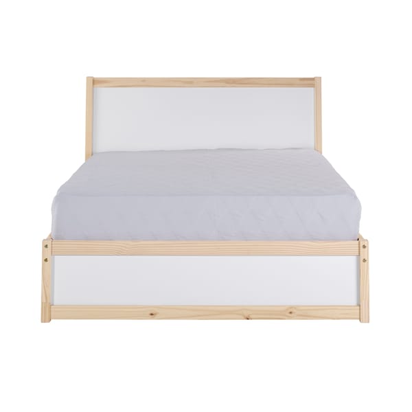 Clean, straight lines and simple styling coordinate with most design styles. The bed features a two-tone finish to complement a range of décor. Constructed from Brazilian Pine, our furniture is meant to be stylish and durable. The included slats provide plenty of support; no box spring needed. It is the perfect centerpiece to any bedroom.
