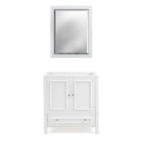 Williamsburg 2pc Wooden Bathroom Vanity Set - 30-in. L Vanity, 30-in. L Rectangular Mirror, White