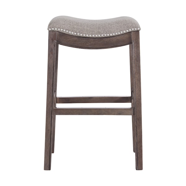 Add a touch of style to your home with this classic stool. The legs are made from rubberwood for extra durability. The backless saddle seat is lined with nail head trim, while cushioned padding provides extra support when you need it most. Stretcher bars between the legs provide stability and comfort, and a metal kick plate protects the footrest from wear. This piece of furniture will put the finishing touch on your bar, kitchen island or tall bistro table.