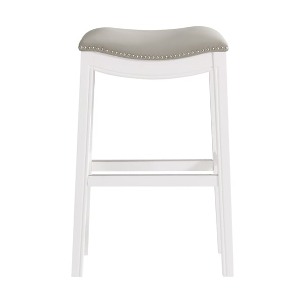 Add a touch of style to your home with this classic stool. The legs are made from rubberwood for extra durability. The backless saddle seat is lined with nail head trim, while cushioned padding provides extra support when you need it most. Stretcher bars between the legs provide stability and comfort, and a metal kick plate protects the footrest from wear. This piece of furniture will put the finishing touch on your bar, kitchen island or tall bistro table.