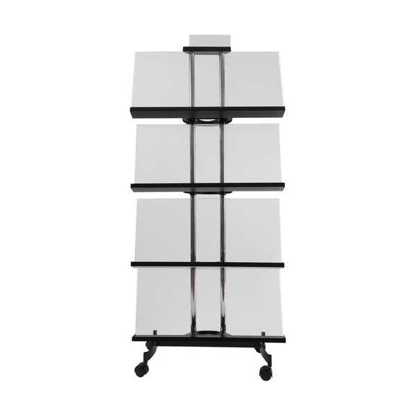 Both modern and discreet, this Transparent Mobile Display is ideal in a reception area. Highlight all your documents with the transparent pockets on four black shelves. Each tablet supports documents or magazines up to A4 format 9.44in x 12.6''. Metal structure allows the plastic display to be solid and stable. Equipped with four wheels, the display is mobile and move where you need it to be.