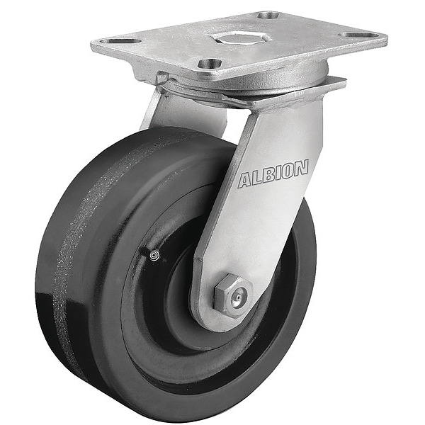 Swivel, Plate Caster, Load Rating 2000 lb, Wheel Dia. 6 in, Wheel Width 3 in, Wheel/Tread Material Phenolic, Wheel Core Material Phenolic, Non-Marking Yes, Number of Wheels 1, Caster Brake Type No Brake, Tread Shape Standard