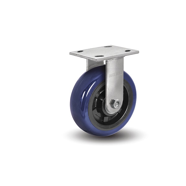 Rigid, Plate Caster, Load Rating 600 lb, Swivel Lock Type No Lock Included, Wheel Dia. 4 in, Wheel Width 2 in, Wheel/Tread Material Polyurethane, Wheel Core Material Polypropylene, Non-Marking Yes, Number of Wheels 1, Caster Brake Type No Brake, Tread Shape Standard