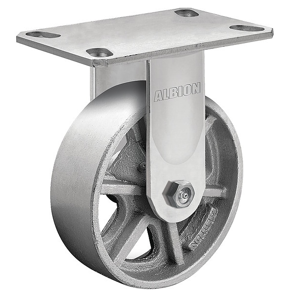 Rigid, Plate Caster, Load Rating 1300 lb, Wheel Dia. 5 in, Wheel Width 2 in, Wheel/Tread Material Iron, Wheel Core Material Iron, Non-Marking Yes, Number of Wheels 1, Caster Brake Type No Brake, Tread Shape Standard