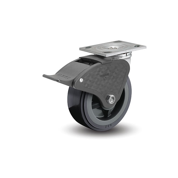 6" X 2" Non-Marking Polyurethane Swivel Caster, Total Lock Brake, Loads Up To 1250 lb