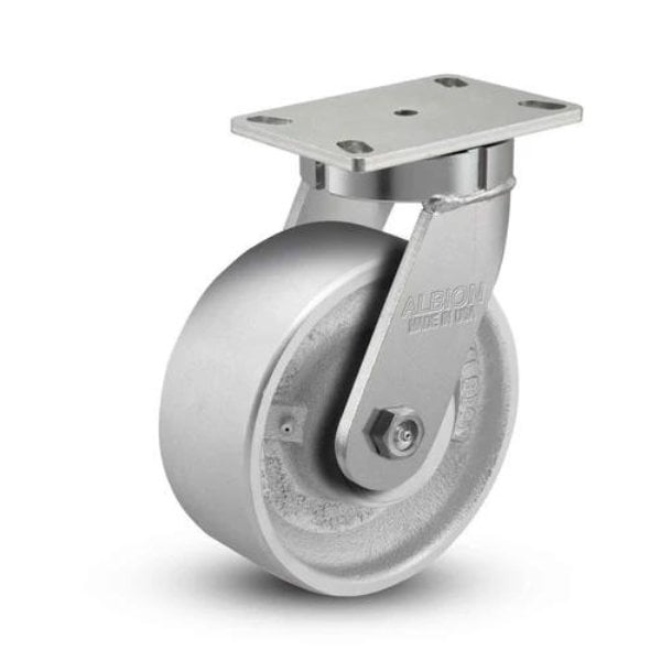 Heavy-Duty Casters for Industrial ApplicationsUnmatched Strength & Durability, Shop Now & Save!Built to Handle the Toughest JobsIntroducing the 6'' x 3'' heavy-duty kingpinless swivel caster with cast iron wheel the ideal solution for your industrial material handling needs. This top-of-the-line caster boasts a maximum load capacity of 2800 lbs, ensuring it can handle even the heaviest loads with ease.Key Features:Heavy-Duty Construction: Built to last in demanding environments.2800 lbs Load Capacity: Move heavy equipment and materials effortlessly.Kingpinless Design: Eliminates a common point of failure for superior durability.Cast Iron Wheel: Provides excellent wear resistance and strength.Expert Support AvailableStill have questions about our heavy-duty casters? Our caster experts are on hand weekdays from 8 am to 5 pm to provide you with personalized advice for your specific project needs. Contact us today!