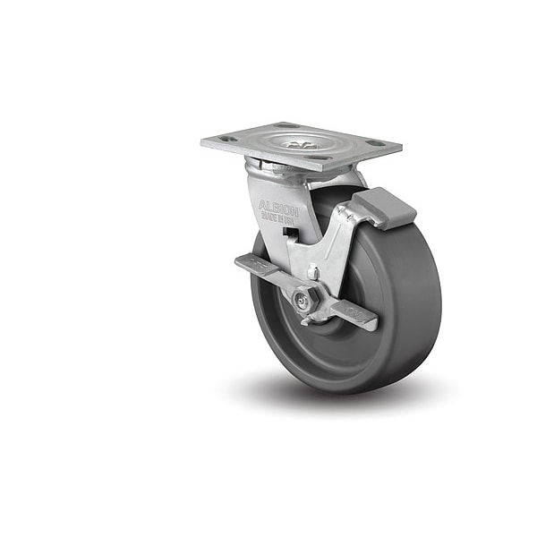8" X 2" Non-Marking Elastomer Swivel Caster, Face Brake, Loads Up To 1200