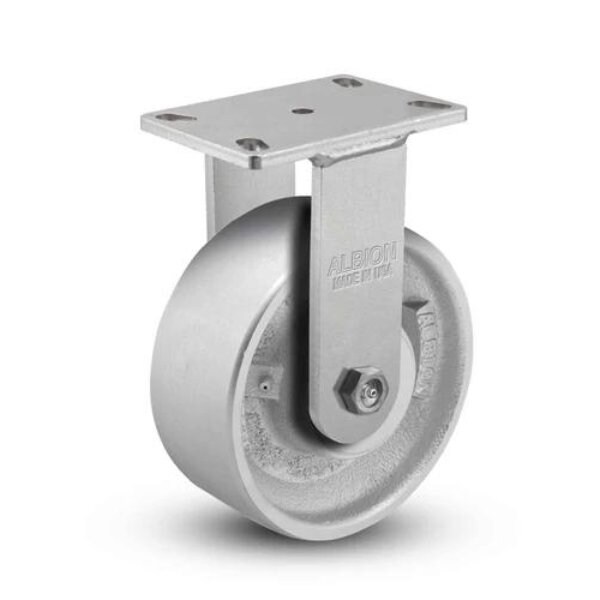 Heavy-Duty Casters for Industrial ApplicationsUpgrade Your Equipment, Built to Last8''x3'' Heavy-Duty Kingpinless Rigid Caster with Cast Iron WheelAlbion Casters SKU: 310CA08501REnsure smooth operation and exceptional load capacity for your industrial equipment with this heavy-duty kingpinless Rigid caster.Sturdy cast iron wheel for superior durability and reliability.Kingpinless design eliminates a common failure point, reducing maintenance needs.Ideal for demanding industrial environments with heavy loads.Shop Now and Upgrade Your Equipment!Expert Support On StandbyGot questions about caster selection for your needs? Our Caster Experts are here weekdays 8 am, 5 pm to provide expert advice.
