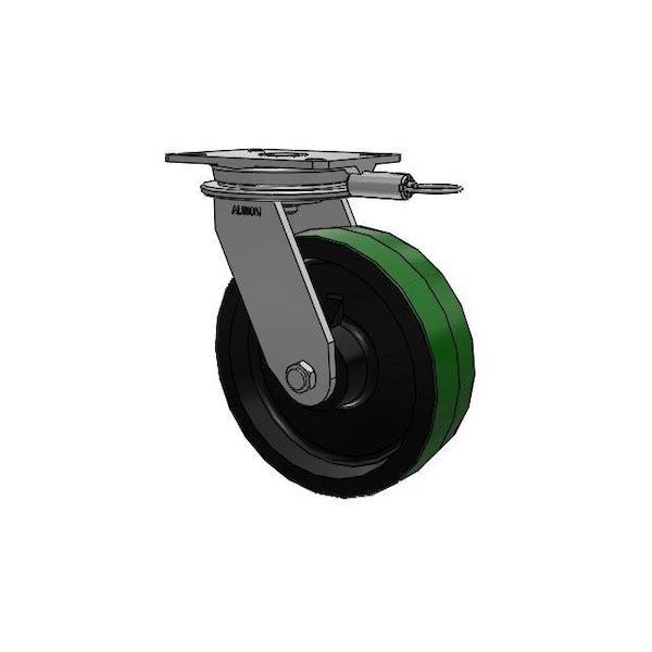 Albion Casters HD Raceway 10'' x 3'' Green Poly-on-Iron Tapered Roller Bearing Caster with 7.25'' x 5.25'' Plate & Swivel Lock, 90PY10509SLProduct FeaturesWheel Diameter: 10 inchesWheel Width: 3 inchesPlate Size: 7.25 inches x 5.25 inchesType: Tapered Roller Bearing Caster with Swivel LockMaterial: Green Poly-on-Iron with Enhanced DurabilityModel Number: 90PY10509SLLoad Capacity: High load-bearing capacity with smooth operationSwivel Lock: Equipped with a reliable swivel lock for added stability The Albion Casters HD Raceway 10'' x 3'' Green Poly-on-Iron Tapered Roller Bearing Caster is engineered for superior performance and durability. Featuring a substantial 10-inch diameter wheel and a robust 7.25'' x 5.25'' plate, this caster is ideal for heavy-duty industrial applications. The advanced Poly-on-Iron construction ensures high durability and resistance to wear, while the tapered roller bearings offer smooth, efficient movement. The integrated swivel lock enhances stability, making it perfect for equipment requiring precise positioning. Whether handling large loads or navigating rough surfaces, this caster provides reliable, long-lasting performance.