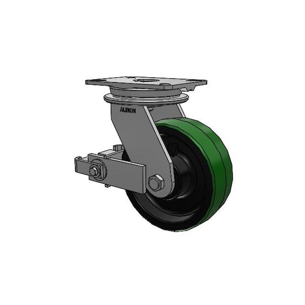 Albion Casters HD Raceway 8'' x 3'' Green Poly-on-Iron Tapered Roller Bearing Wheel Caster with Poly-Cam Brake and 7.25'' x 5.25'' Plate, 90PY08509SPProduct FeaturesWheel Diameter: 8 inchesWheel Width: 3 inchesPlate Size: 7.25 inches x 5.25 inchesType: Tapered Roller Bearing Wheel Caster with Poly-Cam BrakeMaterial: Green Poly-on-Iron with Poly-Cam BrakeModel Number: 90PY08509SPLoad Capacity: Designed for heavy-duty performance with enhanced stability and control Upgrade your equipment with the Albion Casters HD Raceway 8'' x 3'' Green Poly-on-Iron Tapered Roller Bearing Wheel Caster. This high-performance caster is designed for durability and smooth operation, featuring a robust 7.25'' x 5.25'' plate and a sophisticated Poly-Cam brake system. The tapered roller bearings provide exceptional load handling and stability, while the Poly-on-Iron construction ensures resilience against wear and tear. Ideal for industrial and commercial applications, this caster offers superior control and a quiet, smooth ride even under heavy loads. Enhance your operational efficiency and reliability with this top-quality caster.