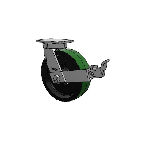 Albion Casters Kingpinless 10'' x 3'' Green Poly-on-Iron Caster with Face Brake and 6.25'' x 4.5'' Plate, 310PY10501SFBB Product Features Wheel Diameter: 10 inches Wheel Width: 3 inches Plate Size: 6.25 inches x 4.5 inches Type: Kingpinless Poly-on-Iron Caster with Face Brake Material: Green Polyurethane on Iron Model Number: 310PY10501SFBB Special Features: Integrated face brake for enhanced safety and control Load Capacity: High load-bearing capacity with smooth, durable performance Upgrade your equipment with the Albion Casters Kingpinless 10'' x 3'' Green Poly-on-Iron Caster, designed for heavy-duty applications and enhanced maneuverability. This caster features a robust kingpinless design that ensures durability and resistance to wear, paired with a high-performance polyurethane tread for smooth operation and reduced noise. The included face brake provides added safety and control, making it ideal for environments requiring precise movement and stability. With a 6.25'' x 4.5'' mounting plate, this caster is easy to install and supports substantial loads with ease. Its green poly-on-iron construction combines strength and longevity, ensuring reliable performance in demanding settings. Enhance Your Equipments Mobility Discover the difference with Albion Casters Kingpinless Caster. Engineered for superior performance, durability, and safety, this caster is the perfect choice for optimizing your industrial equipment. Experience smooth, reliable movement and increased control with the integrated face brake and high-quality poly-on-iron construction.