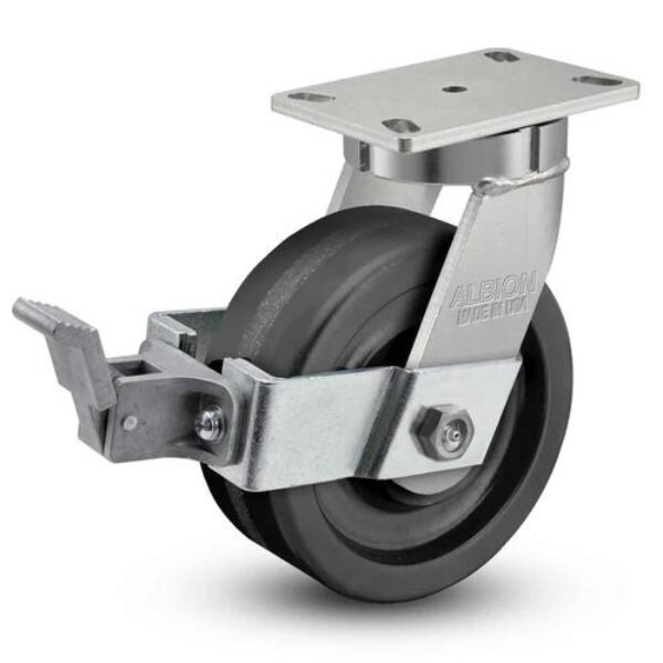 Albion 10''x3'' Kingpinless Top Lock Caster with Phenolic Wheel, 310TM10501SFBBPremium Quality & Performance |Reliable Casters for Industrial ApplicationsProduct OverviewBrand: Albion CastersSKU: 310TM10501SFBBSize: 10''x3''Type: Kingpinless Top Lock CasterMaterial: Phenolic WheelLoad Capacity: 2900 lbMount Height: 11.5 inchesFastening: 6-1/4'' x 4-1/2'' Top PlateLocking Mechanism: Top Lock BrakeThe Albion 10''x3'' Kingpinless Top Lock Caster with Phenolic Wheel is designed for high-stress industrial environments. Featuring a substantial load capacity of 2900 lbs, this caster ensures long-lasting performance and reliability. The phenolic wheel provides excellent resistance to harsh conditions, making it an ideal choice for various applications. With a 11.5'' mount height and a secure 6-1/4'' x 4-1/2'' top plate, installation is straightforward, and the integrated top lock brake adds an extra layer of safety. This caster represents the pinnacle of quality and durability, proudly by Albion Casters.Why Choose Albion Casters?Albion Casters has a legacy of excellence in the caster and wheel industry, offering products that are synonymous with quality and performance. Our casters are engineered to withstand the toughest challenges, ensuring that your equipment rolls smoothly and safely. Choose Albion Casters for superior craftsmanship, unmatched durability, and expert support.Expert Support On StandbyNeed assistance? Our Caster Experts are available weekdays from 8 am, 5 pm to provide professional advice and support tailored to your specific needs.