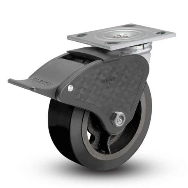 Albion Casters 4'' x 2'' Floor Protective, USA-Rig Top Total Lock Caster with Black Rubber on Iron Wheel, 16MR04201STExceptional Durability & Versatility |Total Lock Mechanism for Enhanced StabilityProduct OverviewBrand: Albion CastersSKU: 16MR04201STSize: 4'' x 2''Type: Total Lock CasterMaterial: Black Rubber on Iron WheelFeature: Floor Protective, USA-Rig TopLoad Capacity: 300 lbMount Height: 5.63 inFastening: 4'' x 4-1/2'' top plateThe Albion Casters 4'' x 2'' Total Lock Caster with Black Rubber on Iron Wheel delivers exceptional durability and versatility. Featuring a total lock mechanism, this caster ensures enhanced stability and security, making it an ideal choice for applications requiring reliable floor protection and secure positioning. The 4'' x 2'' size and robust construction provide smooth movement and high load-bearing capacity, accommodating various industrial and commercial needs. With its floor-protective design and USA-Rig top quality, this caster offers outstanding performance and long-lasting reliability.Reliable Customer SupportOur knowledgeable team of Caster Experts is available Monday through Friday, 8 am, 5 pm to help with any questions or needs you may have, ensuring you select the ideal caster solution for your requirements.