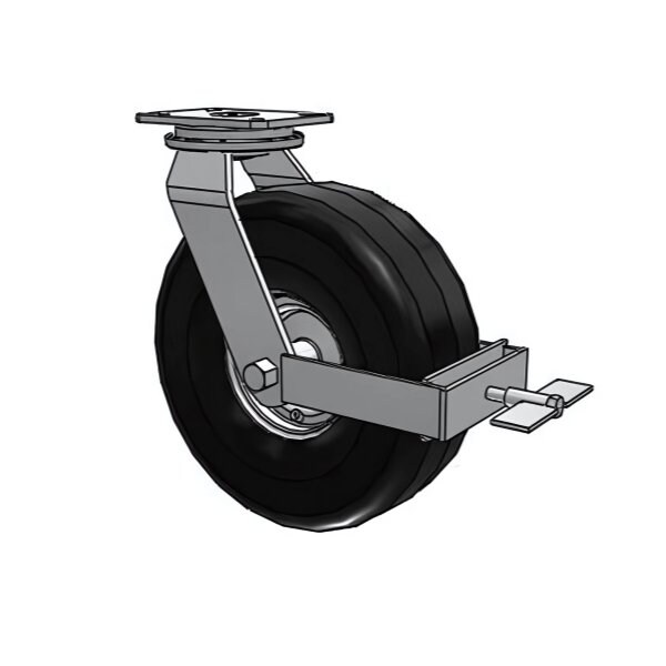 Heavy-Duty 785 lb Capacity Swivel Caster with Top Lock 785 lb Capacity, Top Lock Security, Pneumatic Maneuverability Upgrade your equipment with this high-performance swivel caster! Featuring a durable 14'' pneumatic roller bearing wheel, it offers exceptional shock absorption and smooth rolling over uneven surfaces. The top lock provides added security for your valuable cargo, making it ideal for industrial and commercial applications. Additional Information Wheel Diameter: 14 inches Wheel Width: 5.3 inches Top Plate Size: 7.25'' x 5.25'' Expert Support Available Our dedicated Caster Experts are happy to answer any questions you may have. Contact us weekdays from 8 am to 5 pm for expert advice on choosing the perfect caster for your needs.