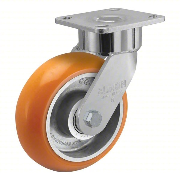 Swivel, Plate Caster, Swivel Lock Type No Lock Included, Wheel Dia. 6 in, Wheel Width 2 in, Wheel/Tread Material Polyurethane, Wheel Core Material Aluminum, Non-Marking Yes, Number of Wheels 1, Caster Brake Type No Brake, Tread Shape Donut
